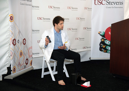 - FootVision, a startup led by Keck School of Medicine student Mark Swerdlow, was one of the ten finalists in the afternoon round of the Showcase. FootVision empowers diabetics with an inexpensive system to image the soles of their feet and transmit those images to a healthcare team. Swerdlow demonstrated his product during his finalist fast pitch on stage.